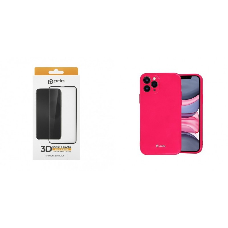 Apple iPhone 14 Pro Max Jelly Silicone Pink+Prio 3D Full Face Tempered Glass
