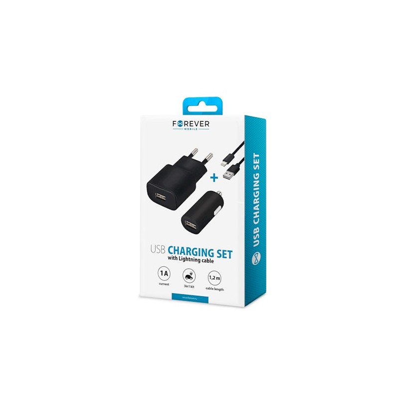 Forever Travel+ Car Charger +Lightning Cable 1A